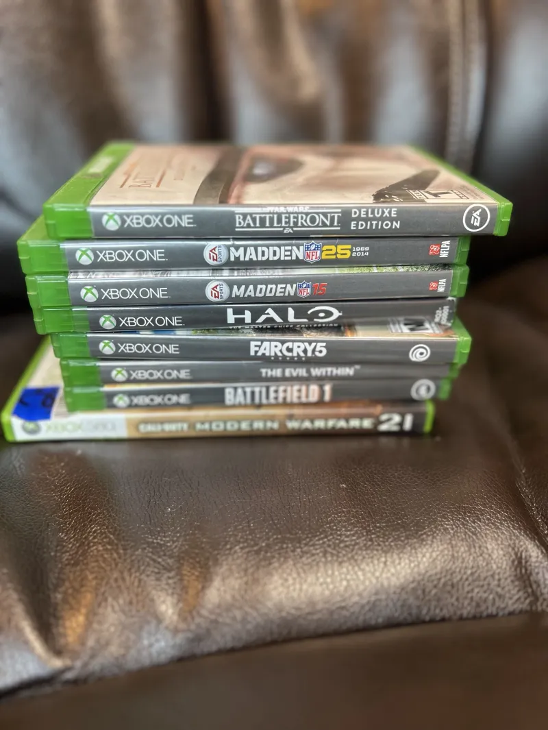 Clearing out a full Xbox game bundle I’ve had for years. All discs are inside the cases and work. Selling everything as one lot — no splitting. Included: • MW2 (Xbox 360) – classic • Battlefield 1 • Far Cry 5 • The Evil Within • Halo: Master Chief Collection • Madden 15 • Madden 25 • Star Wars Battlefront Perfect for someone building a collection or anyone who wants a ton of games cheap. Pickup only: Hawthorne, NJ