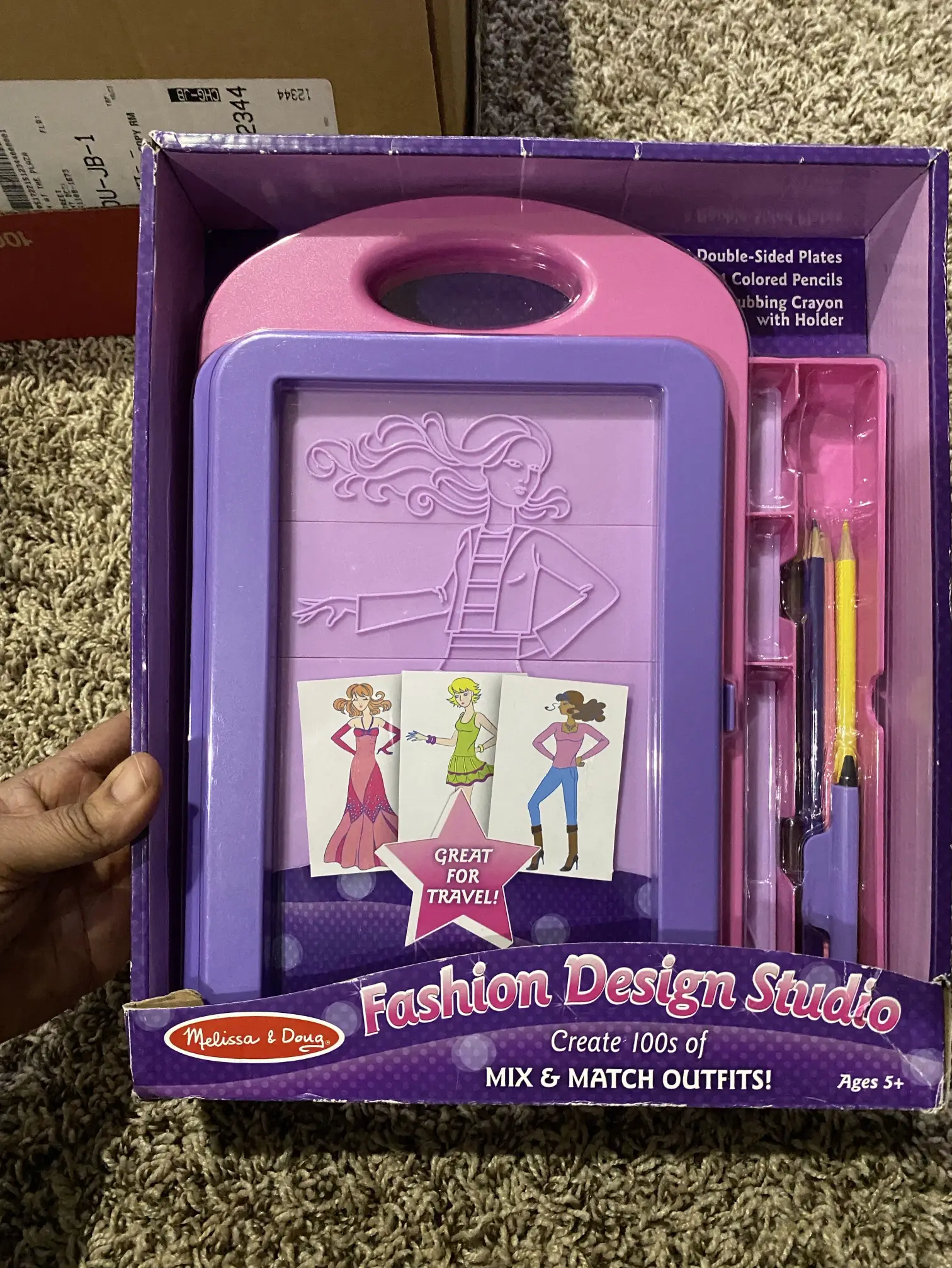 Melissa & Doug Fashion Design Art Activity Kit - 9 Double-Sided Rubbing Plates, 4 Pencils, Crayon Brand new
