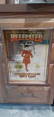 Beefeater Gin bar mirror. Vintage mirror from 1970 s. Rustic wood frame in excellent condition. Very clean. $35 or BRO. Call or text 508-809-0659