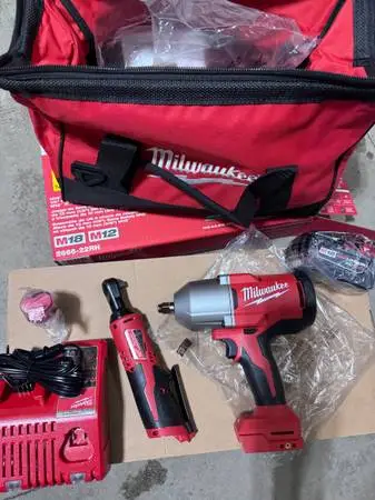 Selling combo Milwaukee tools. Brand new. Regular Ratchet 3/8 impact 1/2 impact 1200 Torque Comes with batteries and charger and bag Thnks 907-792-9221 Thanks for looking.