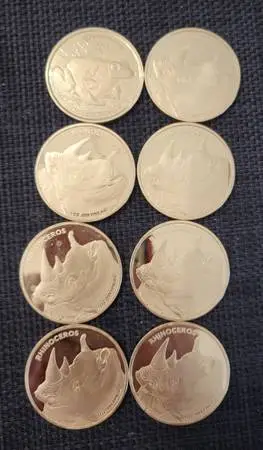 The RHINOCEROS is from SAN DIEGO ZOO. All are 1 troy ounce of silver. PRICE IS FIRM. Feel free to text or call 850-445-8352 CASH ONLY MIKE