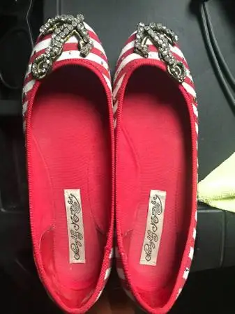 Naughty Monkey nautical red and white strip anchor shoes $40 Reflective silver flats $5 Sperry Top Siderred soles$50 Brown flats $5 American Eagle ivory crochet shoes $8 Coach shoes $50 Sketchers athletic workout / walking shoes $20 ASICS workout / running shoes $20 Text 907-202-1422