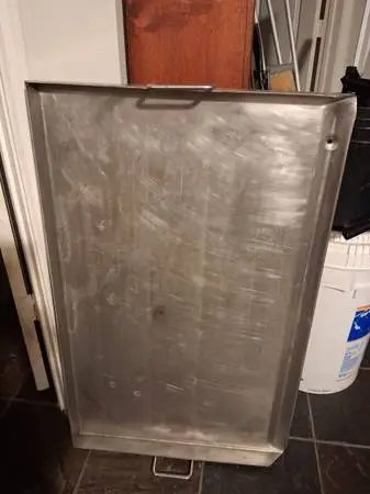 ⭐️THICK CUSTOM STAINLESS STEEL GRIDDLE 36LX22W (A LITTLE MORE THAN 1/8 THICK OF QUALITY STAINLESS STEEL.) W/2 CARRY HANDLES, 4 ROBUST SHORT LEGS & DRAIN HOLE. IT ALSO UNIQUE IN THAT IT HAS 4 LEGS TO STAND OFF FROM GROUND/SURFACE.⭐️ UNIVERSAL FLAT TOP RECTANGULAR PLATE. IS VERSATILE: CAN BE USED WITH GAS, WOOD OR CHARCOAL. YOU CAN EVEN PLACE ON TOP OF FIRE IR CHARCOAL MADE OF THICK GAUGE, HIGH QUALITY STEEL WILL LAST AUCXESSIVE GENERATIONS. THE ONES SOLD ONLINE ARE SAME LINEAR DIMENSIONS BUT NOT 1/8+ THICK, NOR USES 304 STAINLESS STEEL. CONVENIENT, NICE ENOUGH TO BE STATIONARY AND POSSESS THE COMMERCIAL PROFESSIONAL LOOK OR CAN BE DEPLOYED FOR CAMPING, TAILGATE, OR EVENTS, ETC. AVERAGE PRICE FOR SOMETHING SIMILAR ⭐️BUT STILL INFERIOR TO MINE/YOURS⭐️ IS $250 - $300. MY PRICE A SPECTACULAR: $95 PLEASE CALL/TEXT WILLIAM AT EIGHT32.754.5441