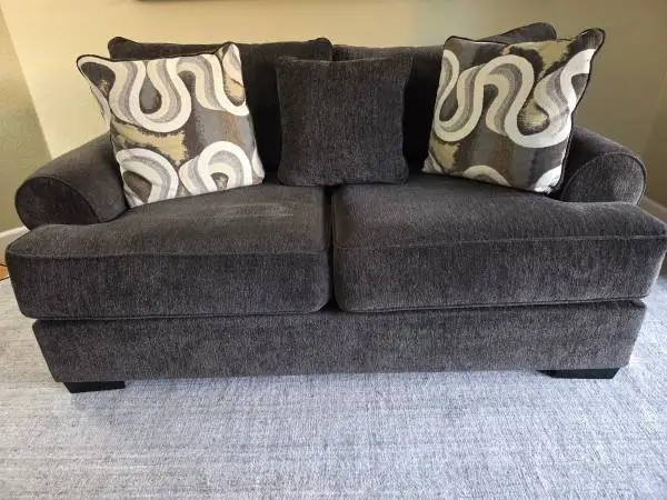 Carson Loveseat - Super Comfortable - Plush polyester and Polyurethane blend - 3 accent pillows included - Hardwood frame, Fully padded frame - Reversible seat cushions and back cushions - Color Gray - Feather & down accent pillows - Comes from a Clean, pet free, non smoking home - Extra-thick seat cushions with Jeromes Dream Seating - Premium, extra-plush polyester fabric - Wide, 71 Frame W: 75 D: 45 H: 40 USA made. $500 George - 714-225-0163 Sofa, sectional, couch, futon, top of the line, must see, chair, recliner, leather, my loss your gain, bed, contemporary, like new, recliner, power, sofa, couch, sectional, king bed, queen bed, dresser, chair, electrical, rocker, leather, queen, king, full, Furniture movers,Storage unit Clean Outs,Small moves, furniture & Junk removal, sofas, couch, mattress,sectionals, recliner, chair, leather, bed, king bed, queen bed, dresser, table, La-Z-Boy, , lounge chair, console, contemporary, modern, mid century, media, tools, moving,my loss your gain, moving service, movers, deliveries,moving, hauling services, haul, furniture, handyman, rs, household, iphone, android, dell, eviction clean outs, foreclosure clean outs, Sony Costco, Home Depot, vintage, washer, dryer, man power, home furniture movers, pick up and delivery, trash pick up, IKEA, Target, West Elm, Pottery Barn Crate and Barrel creation, move in, move out, CB 2, cabinets, cabinet, shelves shelf, bookcase, improvement, desk, chest of drawer, grill, barbecue, appliances, China cabinet, moves, move, hauling,Hutch Newport Beach, Huntington Beach, Costa Mesa, Irvine, Laguna Beach, San Clemente, Orange, Anaheim *