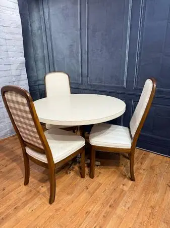 I can deliver this item at no extra chargerain or shine with a cargo vanif you live within 25 miles or so of Centerville Ohio. Feel free to pay when I arrive. I take most forms of payment. Call or text for details 937-269-3354 This round dining table and 3 Ethan Allen chairs are in great shape. The table measures 42 inches wide and 30 inches tall.