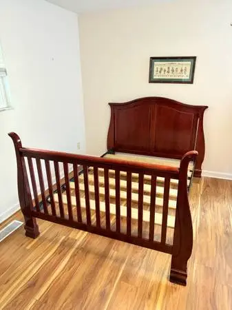I can deliver this at no extra chargerain or shine with a cargo vanif you live within 25 miles or so of Centerville Ohio. Feel free to pay when I arrive. I take most forms of payment. Call or text for details 937-269-3354 This full bedframe is in great shape. It requires no tools to put together. Everything simply hooks into the headboard and footboard. All the Support boards come with it. The headboard measures 59 inches wide and 47 inches tall. It measures 80 inches from the headboa...