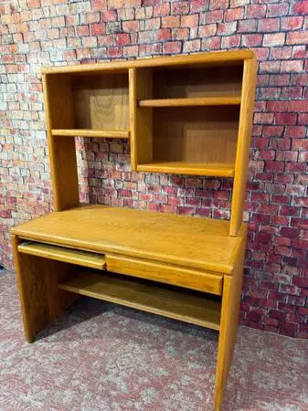 I can deliver this item at no extra chargerain or shine with a cargo vanif you live within 25 miles or so of Centerville Ohio. Feel free to pay when I arrive. I take most forms of payment. Call or text for details 937-269-3354 The solid wood desk is in great shape! It measures 48 inches wide, 24 inches from the back to the front and 30 inches tall… 64 inches to the top of the bookshelf.