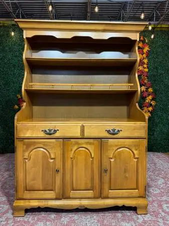 I can deliver this item at no extra chargerain or shine with an enclosed trailerif you live within 25 miles or so of Centerville Ohio. Feel free to pay when I arrive. I take most forms of payment. Call or text for details 937-269-3354 This hutch is made of Maple wood and is in excellent condition! It has a large drawer on the base and plenty of storage underneath. It is all 1 piece but easy to move. it measures 43 inches wide, 18 inches from the back to the front and 65.5 inches tall...