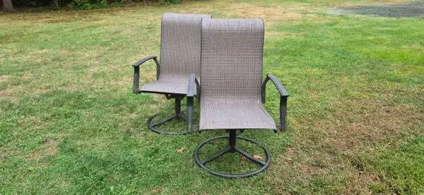 Outdoor chairs with armrests and can swivel 360. Normally sets of 2 sell for $199. Asking only $20. Call or text 508-809-0659
