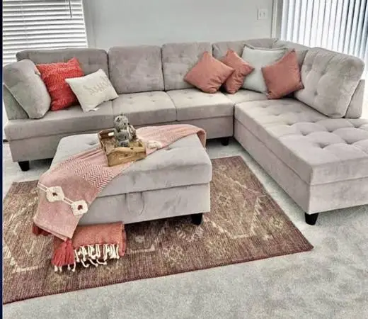 Sectional couch with storage ottoman and decorative pillows ! Brand new still in packaging this is display picture Delivery to all areas 425-305-6612
