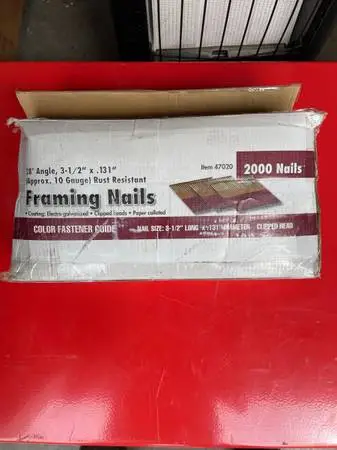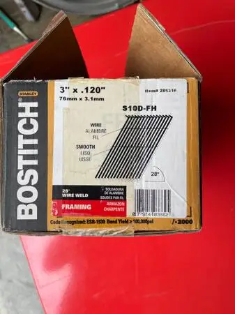 Selling a box of Bostich 3 x 120 framing, nails 28 degree s 10 d-FH . 2000 per box Call/text 260-479-5481