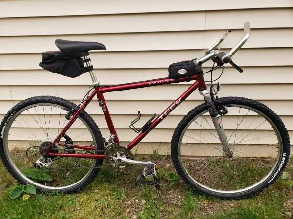 Excellent Mechanical condition 21 speed hardtail mountain bike. Has a 18 True Temper chromoly, double-butted, frame. Rock Shox Quadra 10 fork. Matrix SingleTrack Comp wheels with STX hubs. Full Shimano STX group comp 1 nts. Trek System 2 handlebar. Trek System 2 Gel Lite saddle. Comes with bike frame bags as shown. Wheels trued and hubs rebuilt. Chain and shifters serviced. Tuned . Has brand new tires and tubes and stainless steel cables. Paint has minor flaws. Decals are excellent. Saddle has minor wear on back edge. $260.00 Firm. Cash only. Call or text 269-363-1628 To see my other available refurbished bikes ,click on the more ads by this user or type rix byx in search engine