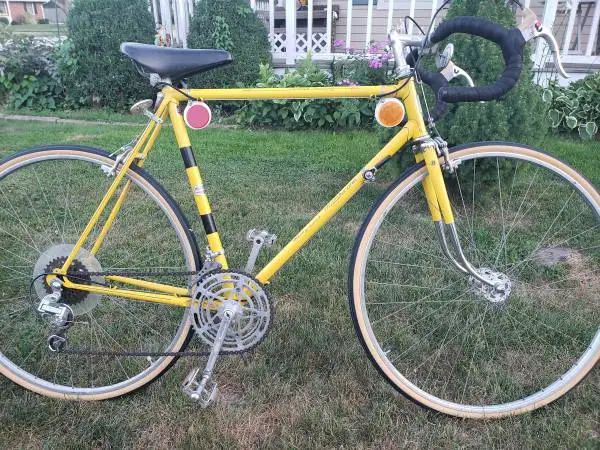 Excellent condition 10 speed .Made in France. Has a 56 cm lugged 102 tubing frame.Polished fork. 27 Weinmann alloy wheels with front and rear quick release . Suntour GT rear and Compe front derailleurs. Mafic racing brakes and levers. Stronglight crankset. Brand new tubes/tires, stainless steel slick brake and shifter cables. and bar tape. Bearings repacked, wheels trued and hubs rebuilt. Bottom bracket rebuilt. Chain serviced. Tuned and ready for many more years of service. Paint and decals are excellent with very few flaws. $350.00 firm . Cash only. Call or text 269-363-1628. To see my other available refurbished bikes ,click on the more ads by this user 9/6/22