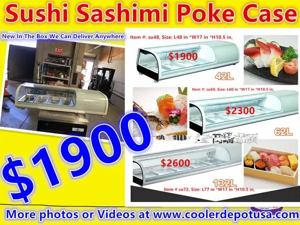 SHOW BAKERY PASTRY DELI CASE REFRIGERATOR refrigerated RESTAURANT EQUIPMENT 🔥 BRAND NEW UNIT AVAILABLE! 🔥 INTERESTED IN THIS UNIT? 📞 CALL or TEXT NOW!! ➡️ REBECCA:305-440-9317 🗣️ Hablo Español ⚠️ Prices are subject to change — Please call to confirm! SHOP NOW WITH COOLERDEPOT Why buy used when you can buy new for the same low price! This is NEW in the Box $980 Item #: Dc 36, Size: L 36 in *W 27 in *H 36 in, desk top All stainless steel, 4 fan inside, circulating cold $2500 Item #: wb 71, Size: L 71 in *W 26 in *H 48 in $2300 Item #: wb 60, Size: L 60 in *W 26 in *H 48 in $2100 Item #: wb 48, Size: L 48 in *W 26 in *H 48 in More item 123 Tap Beer Dispenser Kegerator Commercial Brew Fridge Cooler 2 Automatic Electric Sealing Machine Cup Sealer Boba Bubble Tea Coffee 3 Chinese Wok Range Nsf Csa Natural Gas Commercial Restaurant 4 Refrigerator Bakery Deli Pastry Case Display Showcase countertop 5 Electric Deep Fryer Broiler Griddle 6 Meat Case Fish Cabinet Seafood Freezer Display 7 Beer Cooler Commercial Freezer Refrigerator Refrigerated 8 Barstool High Chair Table Cafe Coffee Shop Bar Stool 9 Freezer Refrigerator Glass Door Beer Cooler 10 Glass Door Beer Cooler Beverage Flower Refrigerator 11 Led Light Boxes New Menu Billboard Menu Board Led Sign 12 Dough Sheeter Pizza Roller Pasta Maker Noodle Machine 13 Stainless Steel Outdoor Outside Table Tables Chair Chairs 14 Ice-Sucker Popsicle Mold Pop Machine Maker Popsicle Freezer Case Display Ice Bar Ice Lolly Icicle 15 Commercial Reach In Freezer Refrigerator 16 Commercial Professional Panini Press Grill And Sandwich Griddle 17 Standing Meat Saw Cutter Grinder Sausage Stuffer Maker_ More item 123 Tap Beer Dispenser Kegerator Commercial Brew Fridge Cooler 2 Automatic Electric Sealing Machine Cup Sealer Boba Bubble Tea Coffee 3 Chinese Wok Range Nsf Csa Natural Gas Commercial Restaurant 4 Refrigerator Bakery Deli Pastry Case Display Showcase countertop 5 Electric Deep Fryer Broiler Griddle 6 Meat Case Fish Cabinet Seafood Freezer Display 7 Beer Cooler Commercial Freezer Refrigerator Refrigerated 8 Barstool High Chair Table Cafe Coffee Shop Bar Stool 9 Freezer Refrigerator Glass Door Beer Cooler 10 Glass Door Beer Cooler Beverage Flower Refrigerator 11 Led Light Boxes New Menu Billboard Menu Board Led Sign 12 Dough Sheeter Pizza Roller Pasta Maker Noodle Machine 13 Stainless Steel Outdoor Outside Table Tables Chair Chairs 14 Ice-Sucker Popsicle Mold Pop Machine Maker Popsicle Freezer Case Display Ice Bar Ice Lolly Icicle 15 Commercial Reach In Freezer Refrigerator 16 Commercial Professional Panini Press Grill And Sandwich Griddle 17 Standing Meat Saw Cutter Grinder Sausage Stuffer Maker 1.Tags: Restaurant Equipment, Bar Equipment, Taqueria Equipment, Deli & Coffee Shop, Ovens, Convection Ovens, Donut Equipment, Pizzeria Equipment, Closing Restaurant Equipment, Grill, Grills, Buffet Equipment, Fridges, Freezers, Coolers, Warmers, Chests, Restaurant Tables, Restaurant Chairs, Benches, Restaurant Dishes, Fryers, Double Fryers, Dry Boards, Stainless Steal, Sinks, Display Cases, Ice Makers, Warming Displays, Refrigerated Displays, Display Racks, Cautionary Equipment, Janitorial Equipment, Light Fixtures, Plates, Booths, Salad Bar, Bar Tables, Small Tables, Heavy Equipment Tables, Heavy Equipment, Commercial Equipment, For Sale, Buy To Sell, Old Or New, Used, Mixer, Oven, Ice Machine, Booth, Chair, Sink, Vent Hood, Walk-In, Cooler, Refrigerator, Freezer, Bar Equipment, Fryer, Glazer Dough Divider, Bakery Equipment, Pizza Oven, Dishwasher, Stainless Steel Table, Mini Rack, Oven, Ice Cream Machine, Meat Slicer, Margarita Machine 2. Search: Stainless Steel, Glass Door, Restaurant Equipment, Commercial Equipment, Refrigerators, Freezers, Beverage Coolers, Merchandisers, Salad Prep Table, Under Counter Salad Prep Tables, Sandwich Prep Tables, Pizza Tables, Pizza Ovens, 1 Door Freezer, 1 Door Refrigerator, 1 Door Under Counter Refrigerator, 2 Door Refrigerator, 2 Door Freezer, 3 Door Freezer, 3 Door Refrigerator, Under Counter Freezer, Under Counter Refrigerator, Hinge Merchandiser, Slider Merchandiser, Back Bar Refrigeration, Bottle Cooler, Thunderbird, Bakers Pride, Atosa, True, Metalfrio, Hobart, Migali, Maxx Cold, Ice Machine, Ice Machines, Restaurant Freezer, Restaurant Refrigerator, Restaurant, Restaurant Under Counter Prep Table, Sandwich Prep Table, Upright Refrigerator, Upright Reach-In Refrigerator 3. We Are Your Source For: Italian Restaurant Supplies * Mexican Restaurant Supplies * Greek Restaurant Supplies * Brazilian Restaurant Supplies * Iranian Restaurant Supplies * Chinese Restaurant Supplies * Restaurant Supplies * Catering Supplies * Bar Supplies * Concession Equipment * Restaurant Equipment * Commercial Equipment * Concession Equipment * Ice Machines * Autocad Design * Refrigeration * Cooking Equipment * Restaurant Furniture * Restaurant Dinnerware * True Refrigeration * Janitorial Supplies * Kitchen Equipment * Restaurant Vent Hood * Restaurant Furniture * Ice Machines * Bar Supplies * Catering Supplies * Bar Stools * Under-Counter Ice Machines * Bar Blenders * Chafers * Wood Bar Stools * Modular Ice Machines * Beer Dispensers * Insulated Carriers * Leather & Vinyl Bar Stools * Restaurant Booths * Restaurant Seating * Fabric Booths * Countertop Ice Machines * Bottle Box Coolers * Ice Sculpture Molds * Metal Bar Stools * Ice Machine Filters * Glass Chillers * Pizza Delivery Bags * Patio Chairs * Ice Dispensers * Bartender Supplies * Chafer Fuel * Metal Chairs * Manitowoc Ice Machines * Bar Equipment * Folding Tables * High Chairs * Scotsman Ice Machines * Shot Glasses * Portable Bars * Dining Room Supplies * Kitchen Supplies * Ranges * Coffee Makers * Worktables * Funnel Cake * Ovens * Waiter Supplies * Hotel Pans * Waffle Irons * Freezers * Wine Glasses * Aluminum Stockpots * Disposables * Refrigerators * Red Wine Glasses * Kitchen Carts * Hot Dog Equipment * Dishwashers * White Wine Glasses * Baking Pans * Popcorn