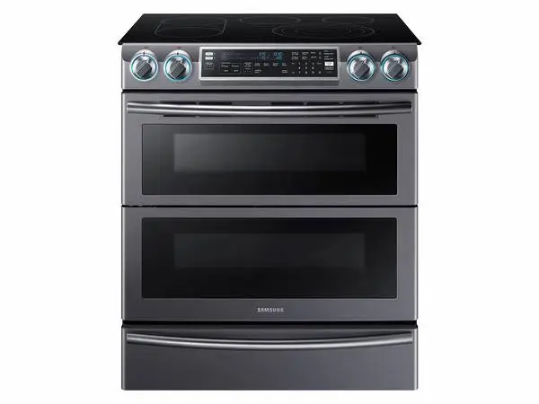 Call or text 720-324-7035. Local only. Cash, Cash App, and Zelle are accepted. Samsung 5.8 cu. ft. Slide-In Electric Range with Flex Duo & Dual Door in Black Stainless Steel Model: NE 58 K 9850 WG Specifications Radiant Ceramic Cooktop Specs Right Front: 6/9/12 - 3,000 W Right Rear: 6 - 1,200 W Left Front: 7 - 1,800 Wbridge Left Rear: 7 - 1,800 Wbridge Center Rear: Warming Center - 7 Dual Oven with Smart Divider Specs Single Oven Capacity: 5.8 cu. ft. Upper Oven Capacity...