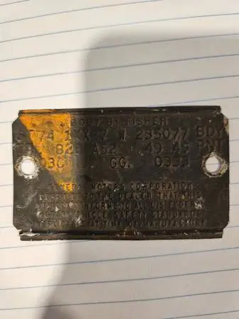 74 Chevy Nova Cowl Tag 2 dr Green Paint Code inquire 631-680-6779
