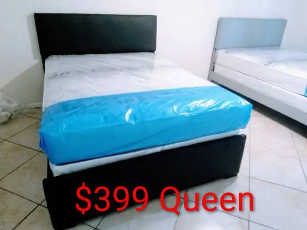 $399 Queen bed frame with mattress and boxspring brand new free delivery after we deliver and assembly then u pay 786-273-8324