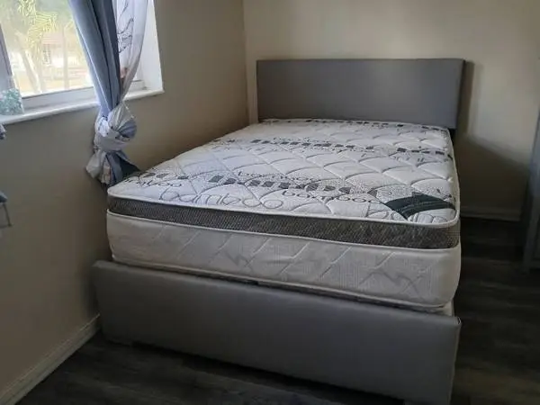Brand new Queen bed frame with mattress and boxspring brand new free delivery free assembly Call or text to place your order 786-273-8324