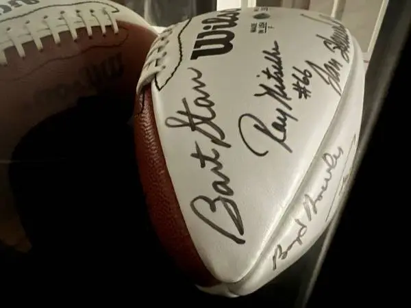 ⭐️ Very Rare ⭐️ Ice Bowl Autographed Football 1 of a Kind! Great for the Packer Collection We had all the players sign at an ICE BOWL Camp Always kept in a glass display case with no direct light - Can Deliver Locally ******************************** ✨A REAL TREASURE ✨ Packer Player Signatures Only: Bart Starr Ray Nitschke 66 Jerry Kramer 64 Ken Bowman Fuzzy Thurston Jim Taylor 31 Willie Wood Tony Canedeo Caroll Dale Boyd Dowler Jan Stenerud ******************* History Ice Bowl playoff game between the Dallas Cowboys and Green Bay Packers. Green Bay won 21-17 to reach the second World Championship - The infamous Ice Bowl NFL Championship game between the Dallas Cowboys and Green Bay Packers on Dec. 31, 1967 The Ice Bowl outcome swung on 1 of the most famous plays in NFL history -- A mundane quarterback sneak. Bart Starr plunged 1 yard to score with 13 seconds left. He did it on third down and the Packers lacking another timeout ------------------- Other Collectables 4 Large Bobble Heads Brett Farve Signed Brett Farve Helmet COA Signed Brett Farve Football COA Hall of Fame Induction Football 2003 James Lofton, Hank Stram, Joe DeLamielleure, Marcus Allen, Elvin Bethea —— Other Packers Items Inquire —— Text is Best to Inquire — CASH ONLY NO EMAIL NO SCAMMERS NO, YOU CANT PAY MORE BY: CASHIERS or CERTIFIED CHECK NO PAYPAL, VENMO, ZEILE No CRYPTO Read above “CASH” NO SHIPPING NO COURIERS IF YOU DIDNT READ THE AD THEN MOVE ALONG CON SOME 1 ELSE — Text is Best or call 224-766-9002 Ask for Derek