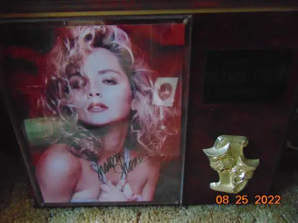 unique and rare, a real sharon st 1 autographed wall plaque, with maker I.D. on the back. excellent original condition.Also a houseful of old art, oil paintings, prints,movie posters of 20,00 Leagues Under the Sea.LOTS of rare 1 of a kind items, at 80 ,Its time to sell. THANKS 954-946-3831