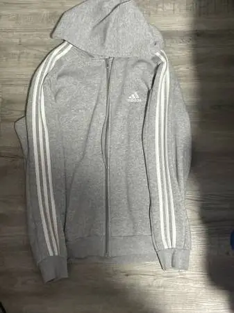 ESSENTIALS 3-STRIPES FLEECE HOODIE ADIDAS / Grey and white stripes /SIZE M #zipup , only worn twice