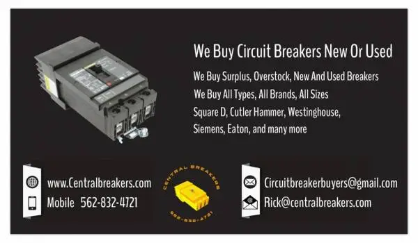 we buy Surplus, Overstock, New & Used Breakers. We Buy All Types, All Brands, Any Condition. Square D, Cutler Hammer, WestinHouse, Siemans, and many more. For more information Please contact us Or visit www.centralbreakers.com