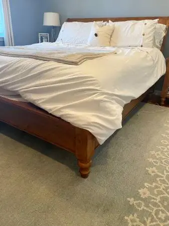 King wood sleigh bed from potterybarn If interested please text/call 315-345-2468