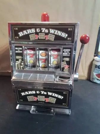 Bars & 7s Wins! Mini Slot Machine Relive the thrill of old-school gaming with this vintage Bars & 7s Wins! mini slot machine! Though it shows signs of use, this nostalgic piece is perfect for collectors and enthusiasts looking to add a touch of retro charm to their space. It will be great for your bar or man cave! The condition is as shown in the photos. This would make a great gift! No batteries required! Mesurments 11.5 x 7.5 Pickup at Yonge Street and Steeles Avenue