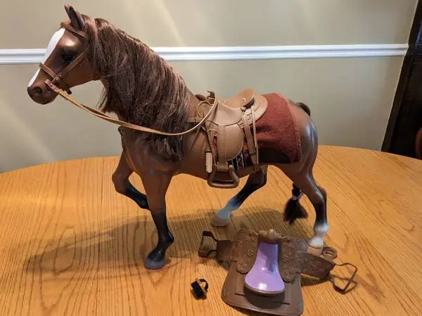 Pre-owned vintage Battat 20 quarter horse for 18 dolls. Includes saddle blanket, 2 saddles and brush. Call or text 423-280-2358.
