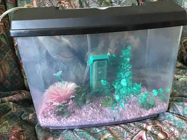 Small aquarium perfect for beginners or children complete with Sand, water filter, instructions and decorations for whatever fish you choose to live in this aquarium