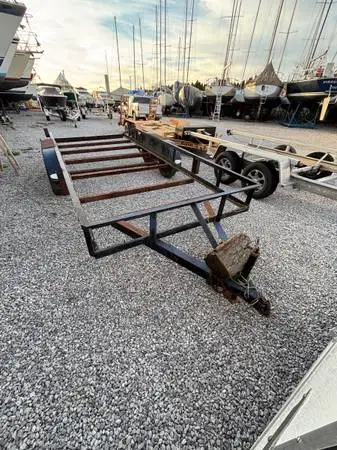 16 ft dual axle trailer. No deck. 1 new tire. Visible in Detroit Marina district. Call 248-688-8331.