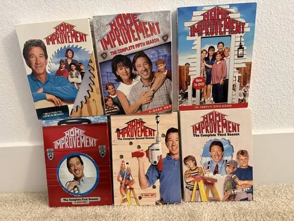 The is a DVD Set of the TV series Home Improvement starring Tim Allen. It includes individual DVD seasons 1 through 6 of the sitcom which falls under the genres of Family and Sitcom classified as a TV Comedy. Based on the stand-up comedy of Tim Allen each episode is set around Tims own Binford sponsored home improvement show, called Tool Time, and is a show within a show. Binford tools is a fictional tool brand.