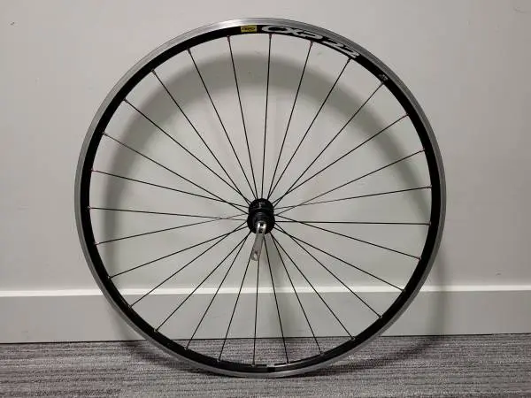 Mavic CXP-22 roue avant *seulement*, de vélo route, double parois, taille 622x13c – pour freins en U ou V. Déclenche rapide quick release. Excellent état. $70 Pour un petit supplément, je pourrais ajouter un pneu slick Mavic et Presta chambre à air. Mavic CXP-22 road bike front wheel *only*, double wall, size 622x13c - for U or V brakes. Quick release skewer. Excellent condition. $70 For a small extra could add Mavic slick tire & presta tube.