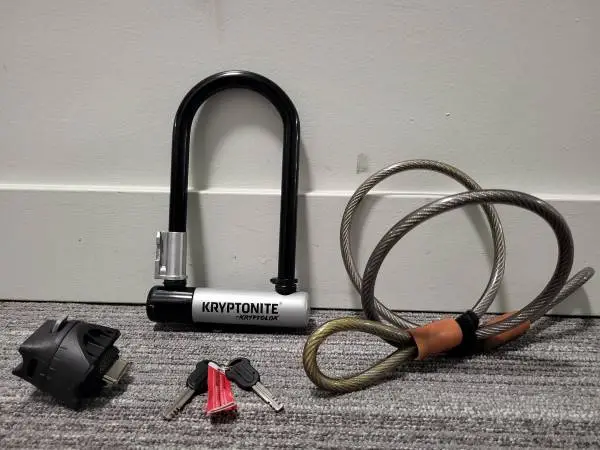 Kryptonite KRYPTOLOK Mini-7 U-lock avec 2 clés et support de montage FlexFrame. La manille du cadenas 7 x 3-1/4, 12.7mm. Tout neuf. Jajoute un câble de sécurité en boucle. Le tout pour 90$. Kryptonite KRYPTOLOK Mini-7 U-lock with 2 keys & FlexFrame bracket. 7 x 3-1/4, 12.7mm Shackle. Brand new. I give with it a looped security cable. All for $90