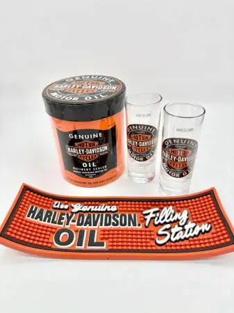 **PLEASE READ** DUE TO INCREASED SPAM I WILL “NOT” RESPOND TO TEXTS OR EMAILS! PHONE CALLS ONLY! IF YOU ARE INTERESTED IN THE ITEM PLEASE CALL. IF YOU SEE THE LISTING THEN THE ITEM IS STILL AVAILABLE New Genuine Harley-Davidson Oil Can Shot Glass Set Part # HDL-18703 Set Includes: 2 Hand Blown Shot Glasses, 2 oz Beverage Mat Oil Can Replica Container Located in Henderson-Green Valley (near DMV)