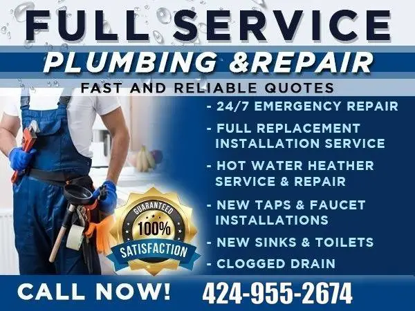 🚨 Need a Plumber Right Now? We’re Ready to Help! Servicing the Entire LA County and Surrounding Metro Area 📞 Call or Text:424-955-2674 Stop waiting for plumbers who don’t answer or never show up. When you call us, you get real help immediately — fast response, professional service, and reliable repairs that last. 💧 Full-Service Plumbing — We Handle It All: • Emergency Plumbing Repairs • Leaking Pipes & Faucets • Clogged Drains & Toilets • Water Heater Repair & InstallationTank & Tankless • Garbage Disposal Repair / Replacement • Sump Pump Service • Sewer & Drain Cleaning • Pipe Repairs & Replacements • Toilet, Faucet, and Fixture Installation • Leak Detection & Hydro Jetting • Gas Leak Detection & Repair • Water Filtration Systems & Low-Flow Toilets • Copper Repiping & Water Line Services • Code Compliance & Plumbing Upgrades • Much More............. ⚙️ Why Homeowners Choose Us: ✅ Live Answer 24/7 – A real person picks up every time ✅ Fast Response – We show up when we say we will ✅ Fully Stocked Trucks – Most jobs d 1 on the first visit ✅ Upfront, H 1 st Pricing – No surprises, ever ✅ Clean, Professional Work – We treat your home with respect ✅ Experienced Technicians – Quality you can trust 💬 “We built our reputation on speed, reliability, and h 1 st service.” Don’t let a plumbing problem turn into a bigger mess — call now for immediate help and get it fixed today! 📞 Call 424-955-2674 — Fast, Reliable, Affordable Plumbing Servicing the Entire LA County & Surrounding metro area
