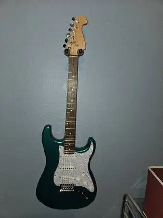 I built this guitar from a Leo Jaymz painted guitar kit from Amazon. My daughter wanted it but now she wants to only play acoustic. For a kit that cost around $110 this is a great deal. The body and the neck are just wonderful and are easily worth the $110 paid for the kit. Perfect neck with no sharp edges. Even before it arrived i had bought a loaded pickguard with Alnico 5 pickups that gets wonderful reviews, a set of Grover self locking tuners and a genuine Fender bridge. $60 for the pickguard, $60 for the tuners and $28 for the Fender bridge. In this sale I am including the old bridge which is perfectly fine and the old loaded pickguard which I have to be honest, I never even plugged in. All I know about them is that are S S S. I honestly can say that this is a very nice neck and body, nothing cheap here and I dont know how they do it. Add in the upgraded tuners, loaded pickguard and bridge and this is a great deal for anybody. When I put the string trees on I did strip the screws but that is pretty minor. It probably would benefit from a setup because I did the best I could but I am no luthier. This guitar is leaps and bounds above any Squier or cheap guitar that you may find at a garage sale for the same price. Thanks for looking.