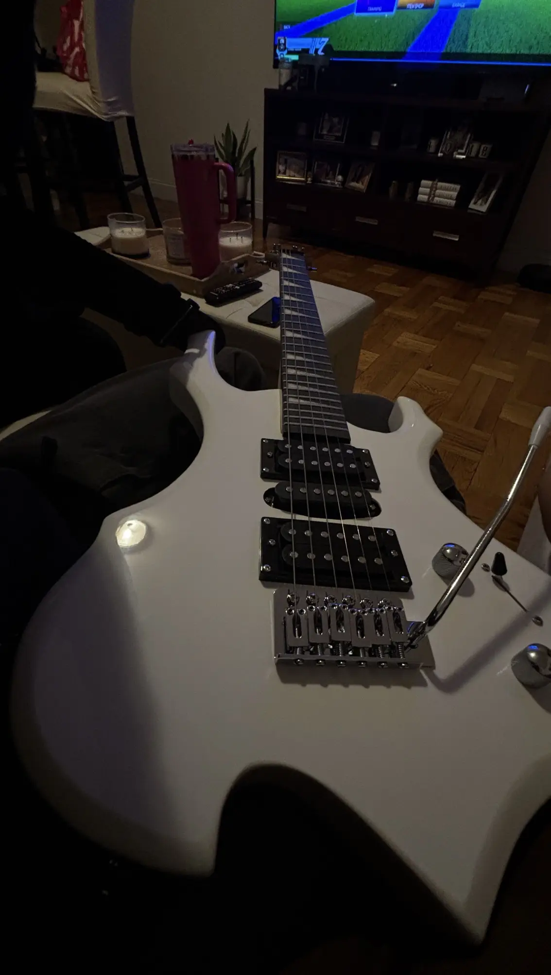 Selling a white electric guitar. It's in great shape and ready for a new player! Perfect for beginners or experienced guitarists looking for a stylish instrument